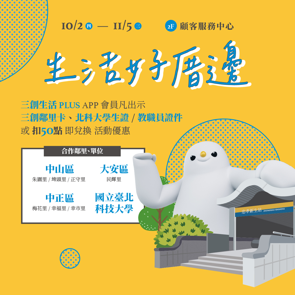 三創會員凡出示 三創鄰里卡、北科大學生證/教職員證件 或 扣50點