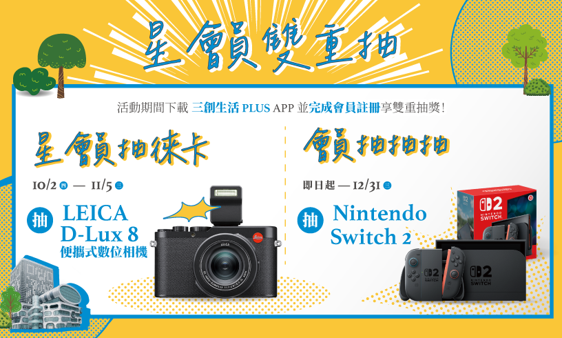 活動期間下載三創生活PLUS APP並完成會員註冊享雙重抽獎!