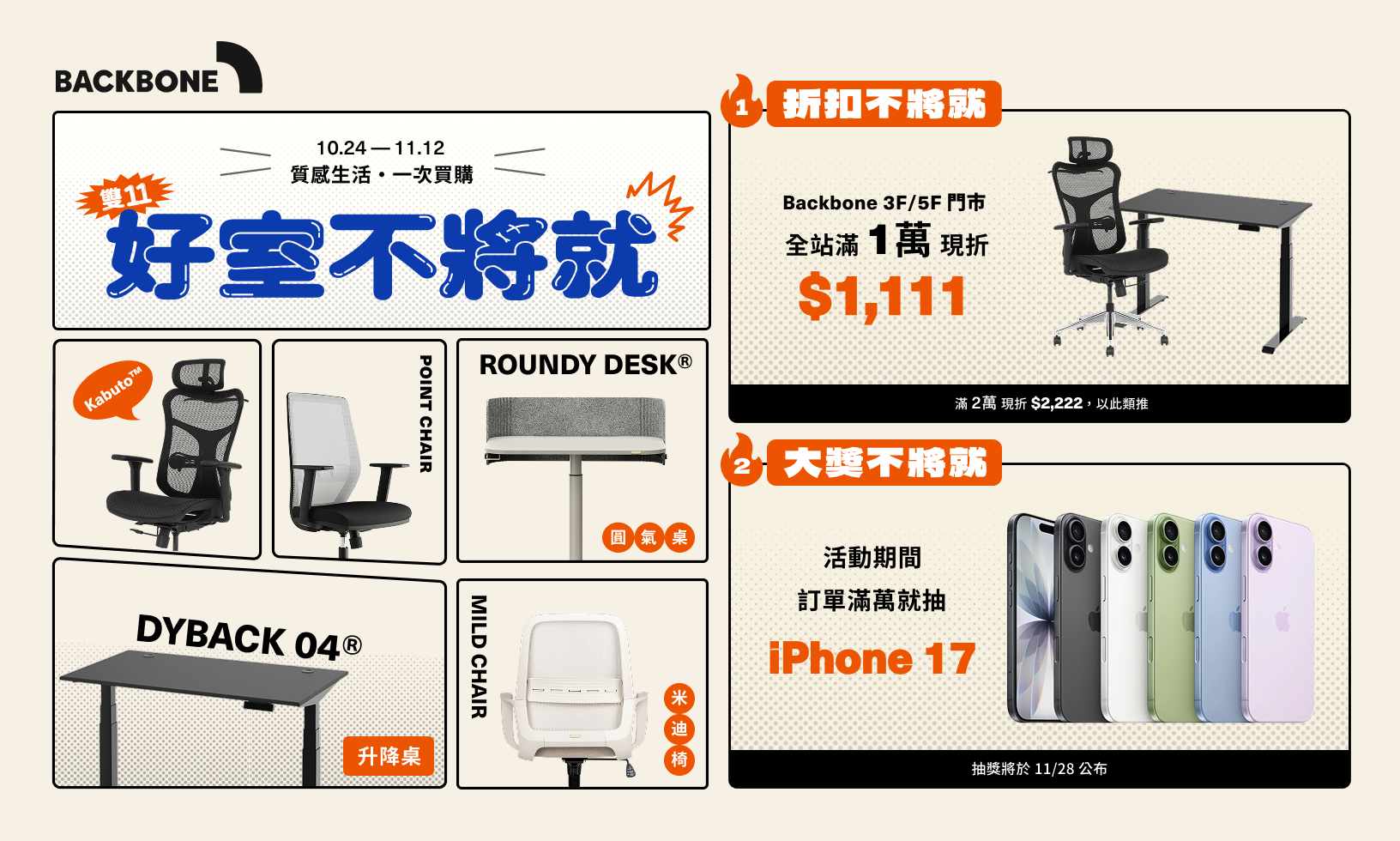 雙11折扣不將就!Backbone 工學桌椅讓你一起買購!