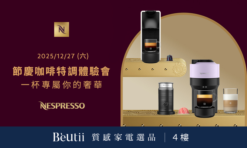 報名期間即日起–2024/12/26 (五),凡報名到店,即贈「NESPRESSO 精美小禮物」乙份