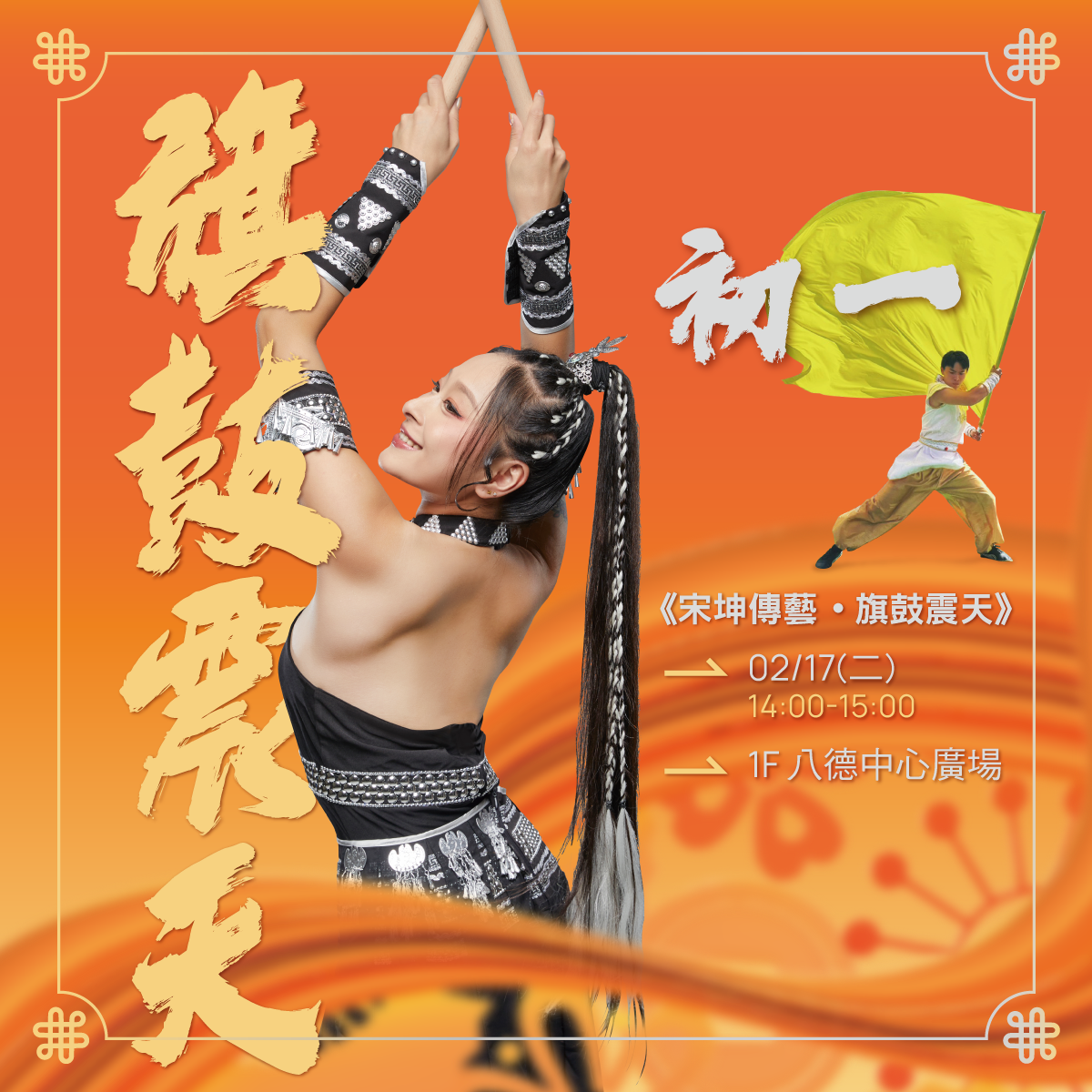年節期間還有宋坤傳藝帶來以旗術、戰鼓與特殊翻滾《旗鼓震天》表演,以及馬嘻搜友韓瘋新年祭市集,熱鬧有趣!
