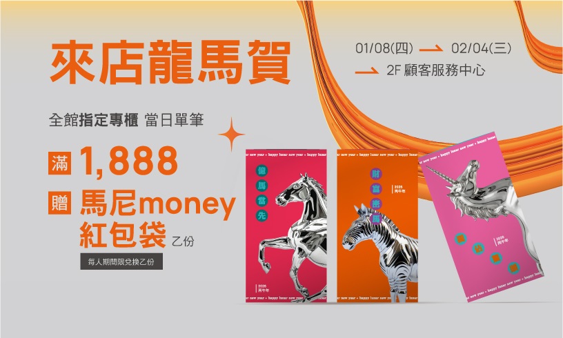 滿$1,888 贈「馬尼money紅包袋」乙份