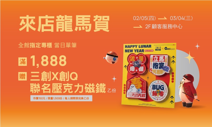 【第二波】來店龍馬賀|消費滿$1,888 贈「三創X創Q聯名壓克力磁鐵」