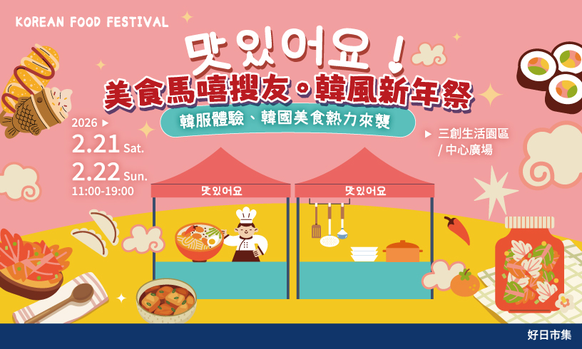 新年過後的第一場派對,就在三創!以「馬嘻(맛있, 好吃)」為主題,結合韓風設計、街頭小食與潮流文化,打造最具風格的韓系美食市集。