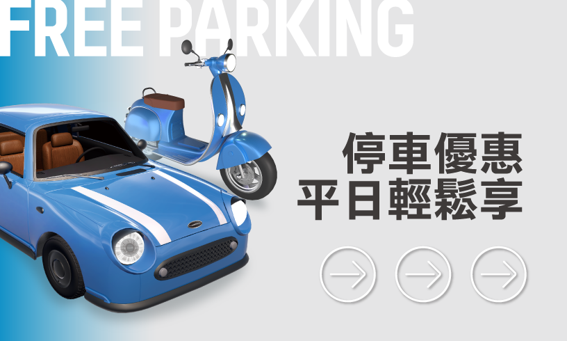 2.每月享當日全折免費停車2張(平/假日皆可使用)。