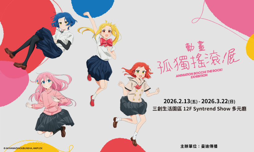 【《孤獨搖滾!》動畫展】預計於2/13於三創生活園區12F盛大開展,展區集合動畫經典橋段及重點場景,區分為九大展區,讓粉絲重新回味孤獨搖滾的音樂歷程。