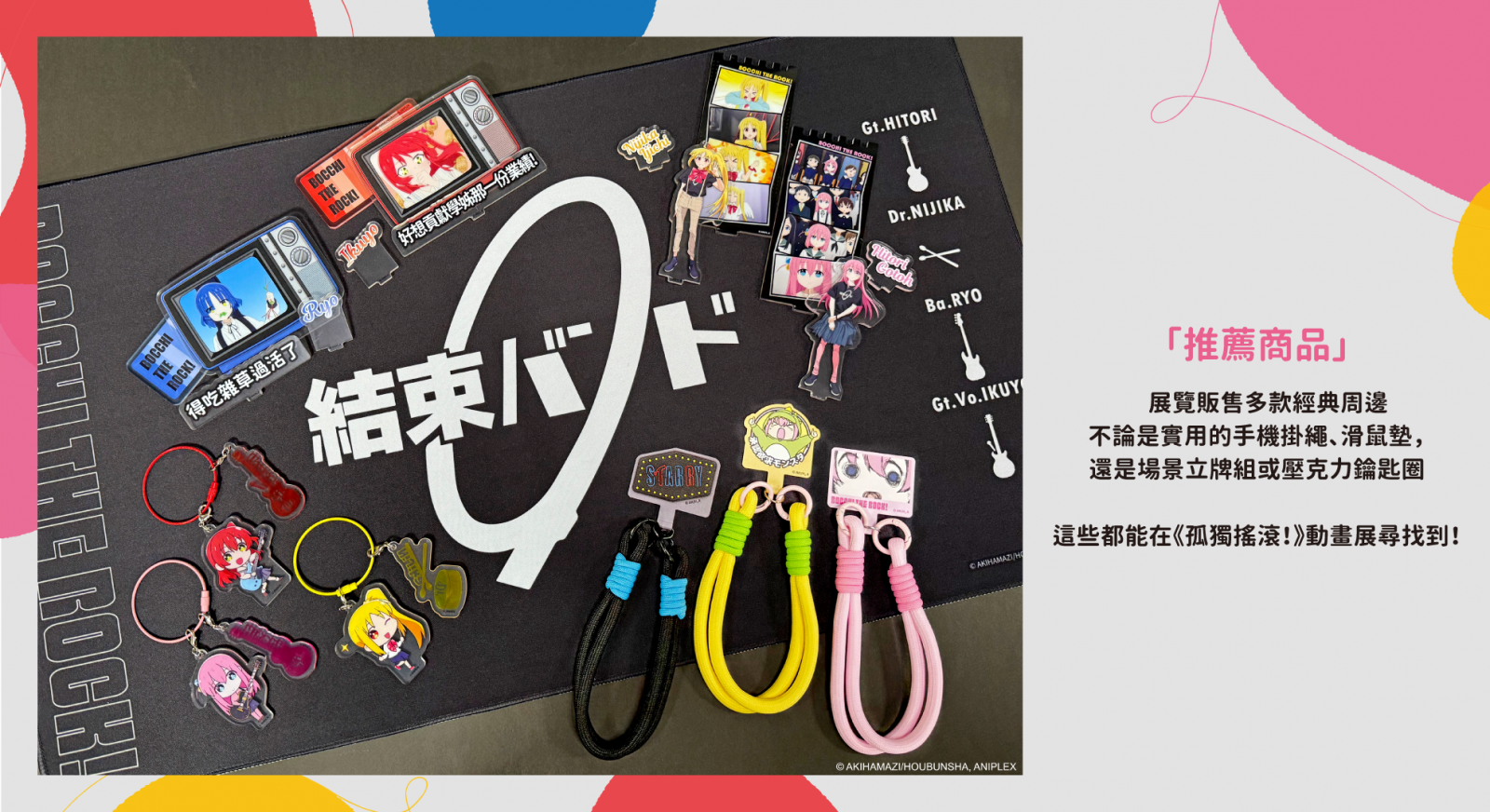 為了本次展覽,特別為粉絲繪製台灣專屬立繪,將台灣在地特色精巧融入,將會以多元的面貌與大家相見!場內還有日本空運來台限量周邊商品,喜歡小孤獨的粉絲們,絕對不可錯過!