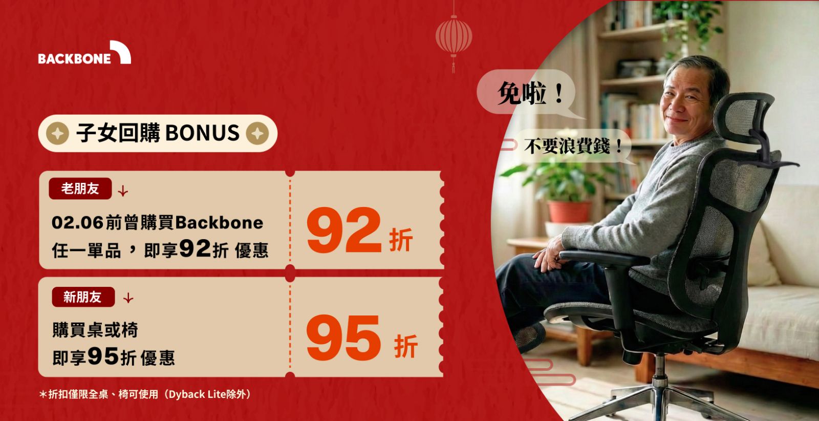 Backbone 新年限定,孝親送心「椅」!憑有效證件最高享92折