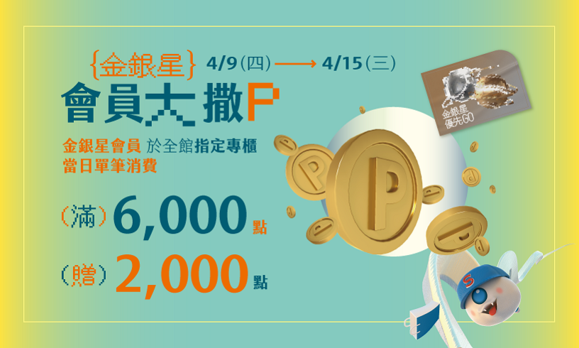 活動期間 金銀星會員 於全館指定專櫃 當日單筆消費