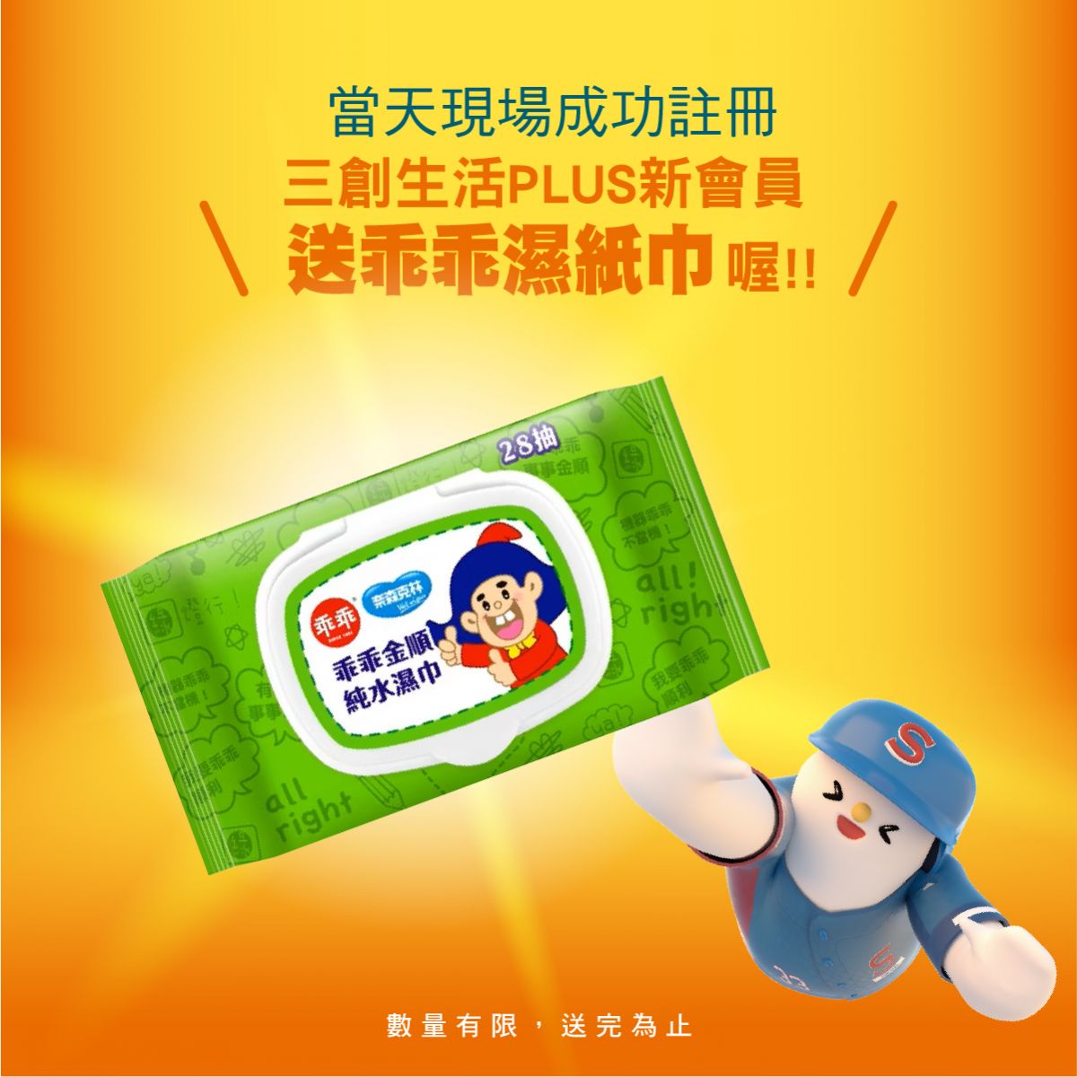 當天活動現場成功註冊三創生活PLUS新會員,送乖乖濕紙巾喔!!