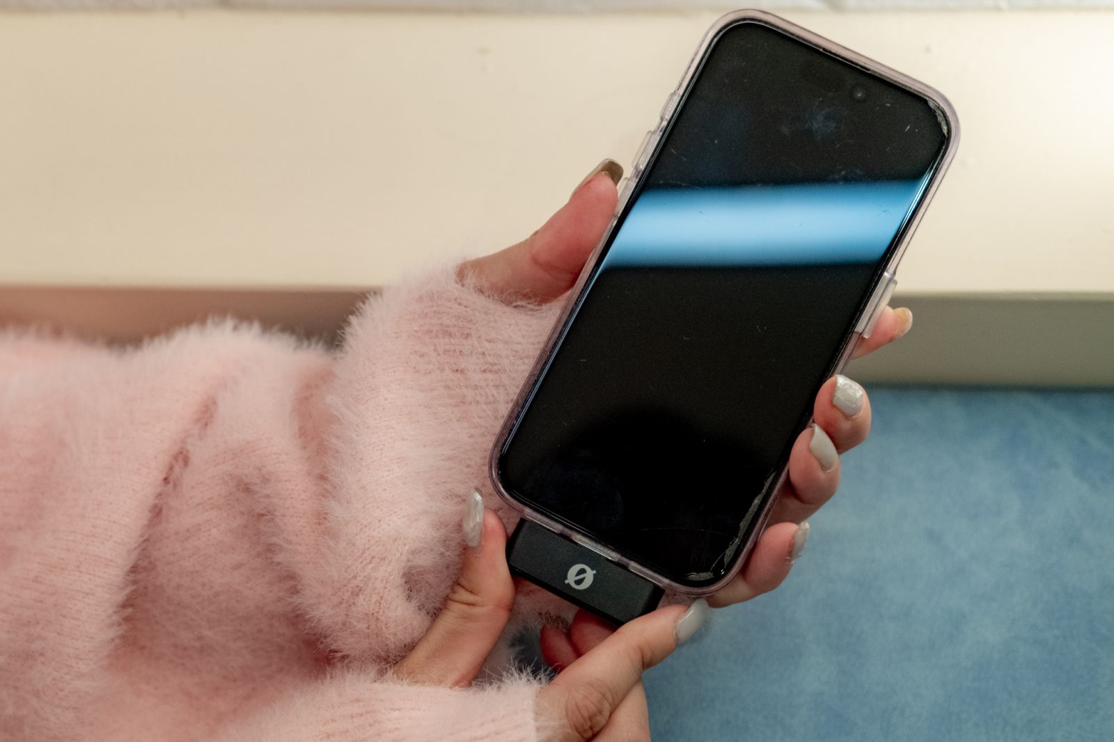 ▲ 不需要做任何設定,把接收器插到手機上就會自動配對