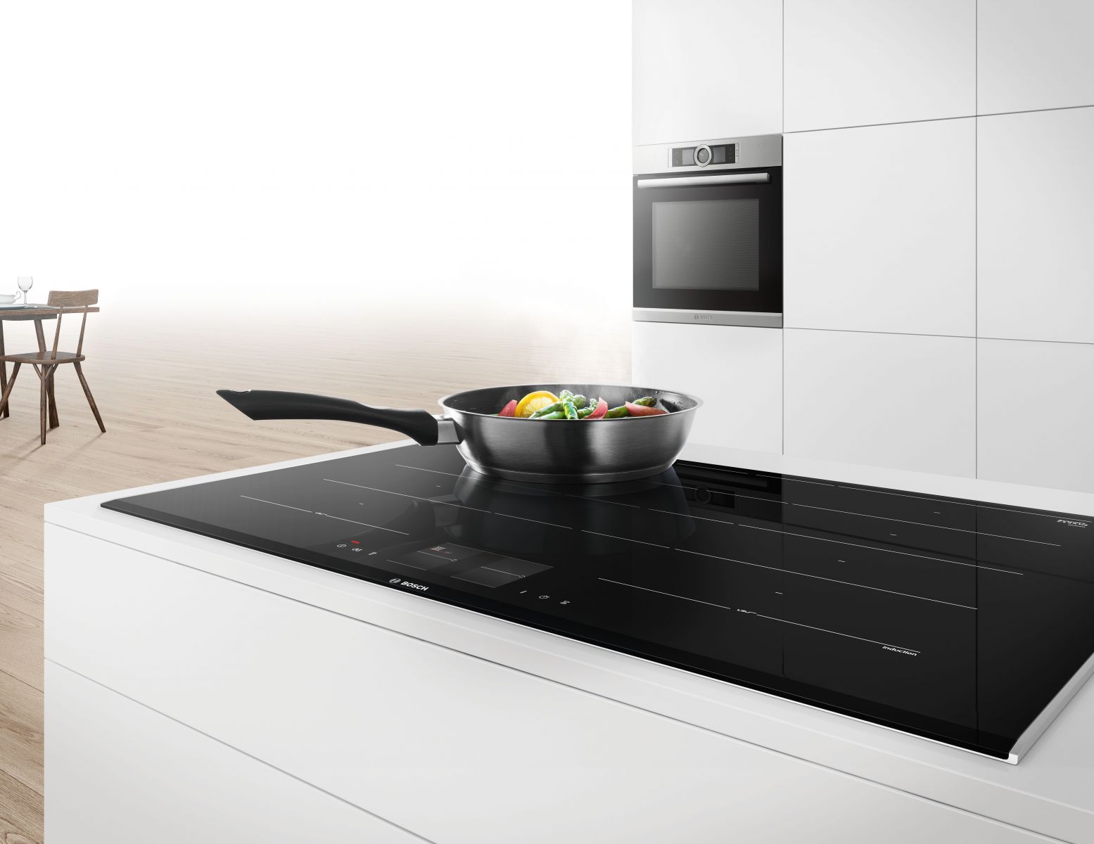 在講求效率與火候的中式料理裡,最怕的就是火力不夠。Bosch Flex IH 智慧感應爐能輸出高達 7,400 W 的瞬間大火力,搭配 17 段火力控制與 FlexZone 彈性烹調區,能依鍋具大小自動偵測加熱面積。那種一手翻炒、一手切菜的流暢節奏,終於可以在家裡複製。更棒的是,IH 感應爐只在鍋底產生熱能,不會讓整個廚房被熱氣包圍,對習慣都市生活的我們來說,這是對效率與體感舒適的雙重照顧。