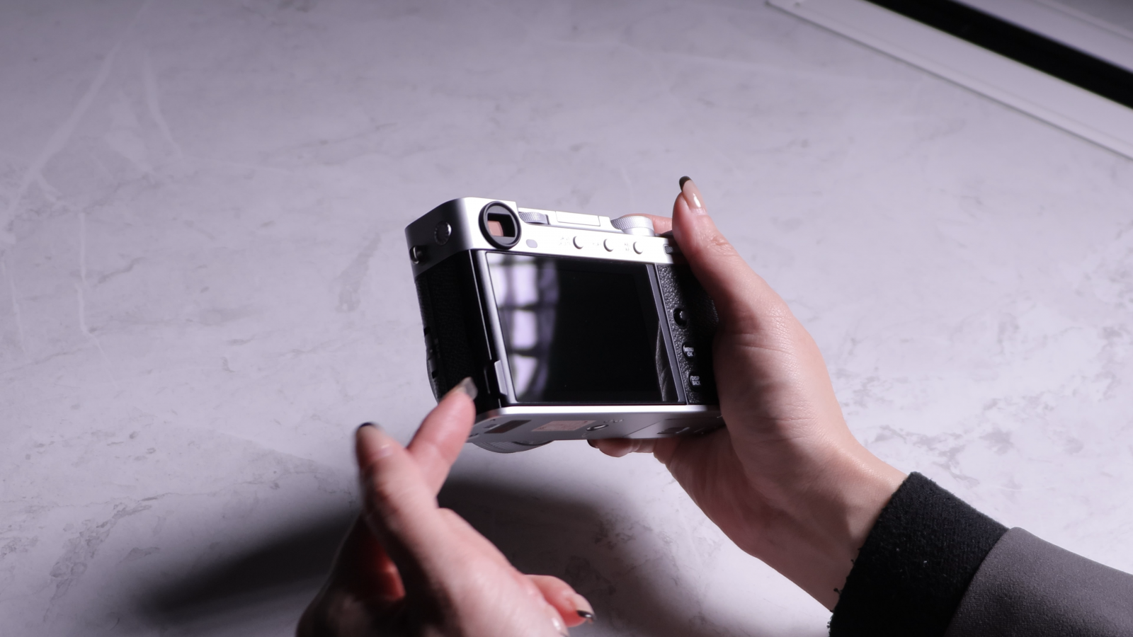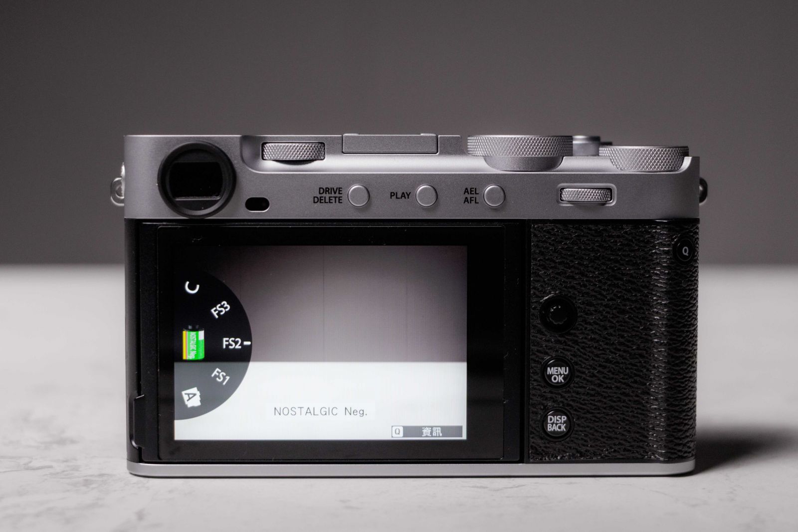 不過尷尬的是,轉盤位置設計靠近電子觀景窗,當我用左手操作時容易遮到感應器,導致螢幕誤判切換成 EVF,你切換時就無法即時判斷當下畫面搭配軟片模擬的呈現試什麼效果,所以如果你也覺得這是困擾,建議大家也可以把軟片模擬改設在右前方的自訂滾輪,改用右手操作,整體會更順。