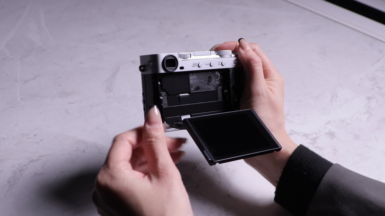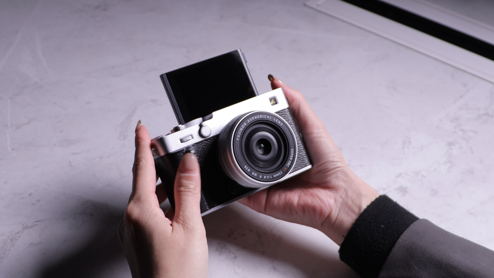 X-E5 採用上掀式翻轉螢幕,對拍 Vlog 或是自拍的構圖就更加方便,解析度與亮度足夠。