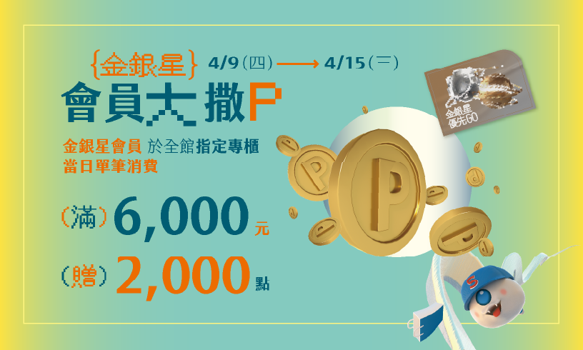 活動期間 金銀星會員 於全館指定專櫃 當日單筆消費