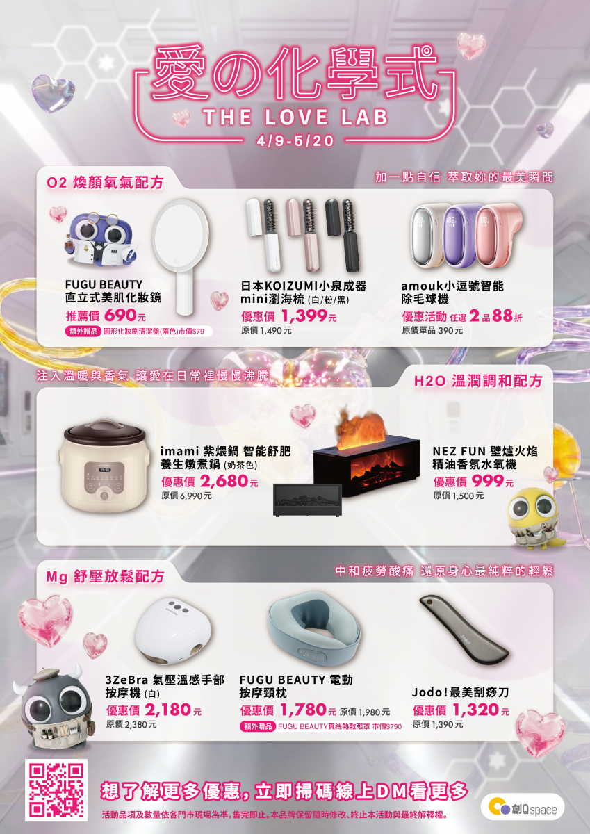 迎接溫馨母親節與浪漫 520,創Q space 特別呈獻「愛の化學式」主題企劃。