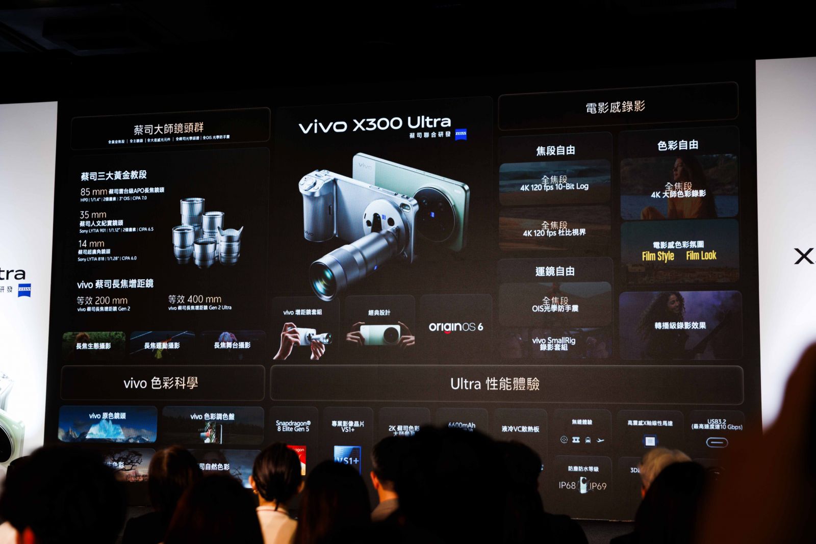 更狠的是,X300 Ultra 還支援全焦段 4K 120fps、10-bit Log 錄影,並支援 ARRI LogC3 與 vivo Log,還有導演模式、錄影調色盤、多款電影色彩風格,以及 4K 60fps 人像錄影。這些規格代表的是,常拍 YouTube、短影音、品牌內容的人,手上的素材會更有後製空間,畫面容錯率也更高。