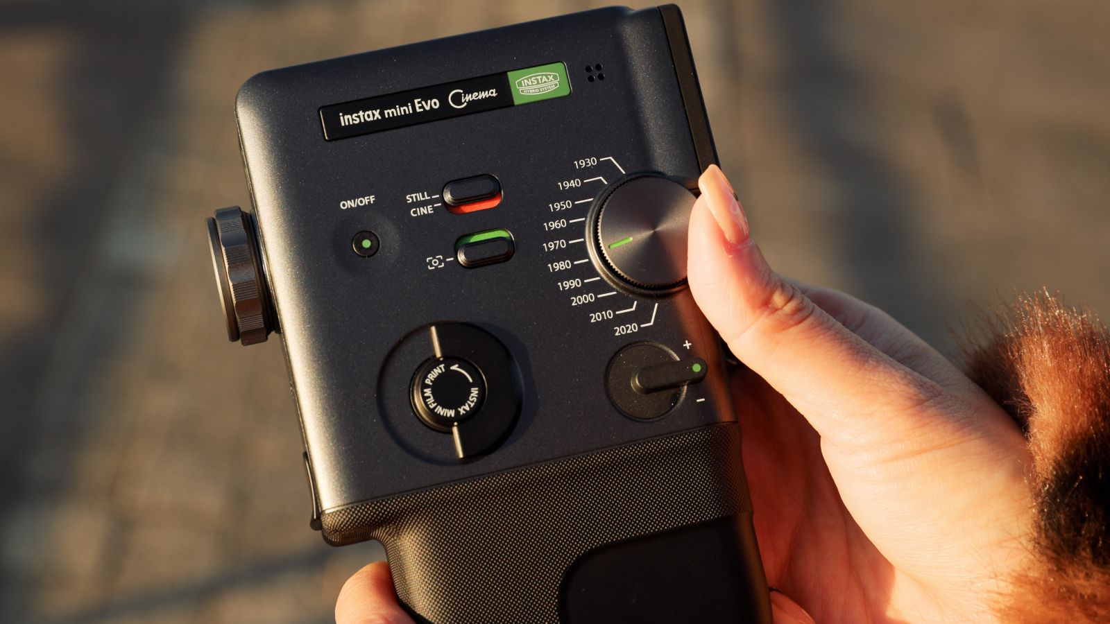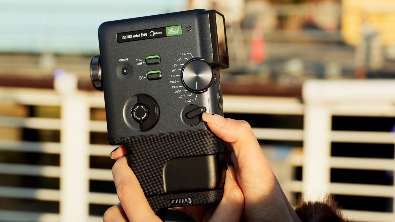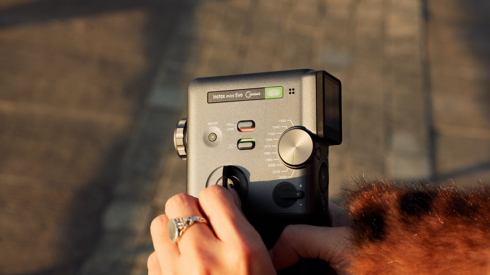 先不要急著搖頭,因為 instax mini Evo Cinema 就是那種你第一眼會先被外型拐走,第二眼開始懷疑自己理智還在不在的相機。它長得像一台縮小版電影機,靈感來自 1965 年的 FUJICA Single-8,整台機身從按鍵、轉盤到配色都在對你說:今天不是來拚畫質的,我拍的是一種當下的感覺。